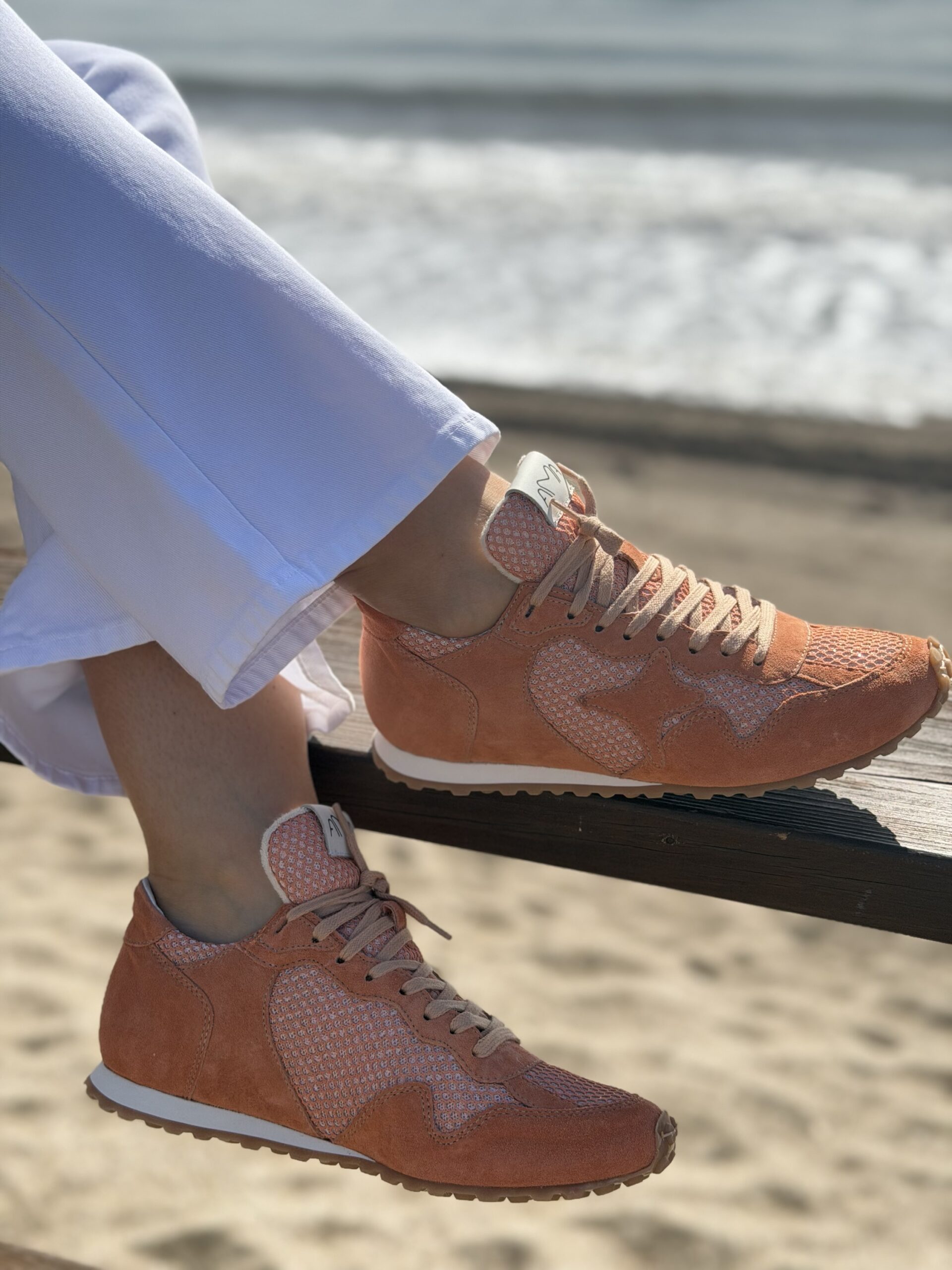 Zapatillas Amabrand en color naranja, ideales para darle un toque especial a tu look. De estilo running bajas, muy en tendencia ahora. Combina antes naranja con tejido y estrella al tono. Fabricadas en Italia con pieles premium, blanditas y muy cómodas!